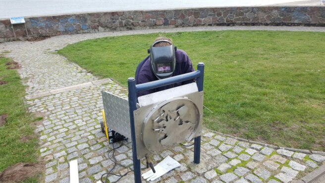 The cache owner, ruegenspass.eu, a professional metalworker and construction manager, designed and built the cache by hand. Like all of his creations, it began as an idea, took shape on paper, and was then carefully brought to life with the help of his wife, Grit.